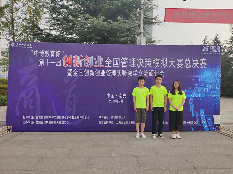 721日至23日,2019“创新创业全国管理决策模拟大赛总决赛在四川南充西华师范大学(华凤校区)举行。美高梅网上赌博(中国)唯一官方网站 派出由2017级工商管理1班赵鹏、2017级市场营销1班宁艳朵和市场营销2班任广东组成的明日之星代表队参加了本次比赛。通过三位同学的不懈努力,一路过关斩将,脱颖而出,以行业第三的好成绩荣获全国总决赛一等奖。