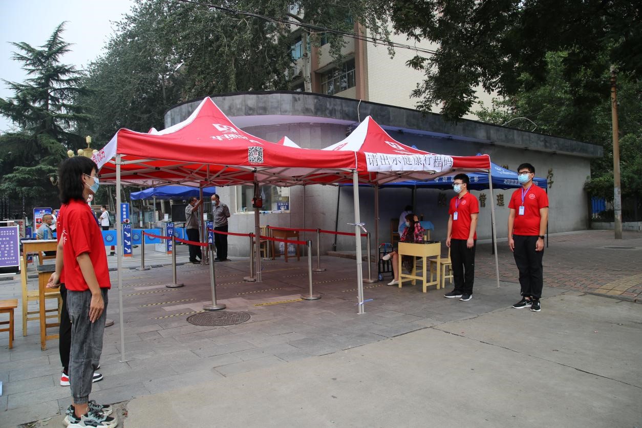 10日一大早,学院领导,经济系、信息系、文法系书记,学院办公室、学生工作部、院团委、安全工作部、后勤保障部等相关部门负责人就来到校园,实地查看学生返校情况,迎接慰问返校学生。上午9点钟学生们陆续返校,在接受志愿者查验两次核酸检测阴性报告、健康码及行程码后,到门口在核验身份,测量体温有序入校。