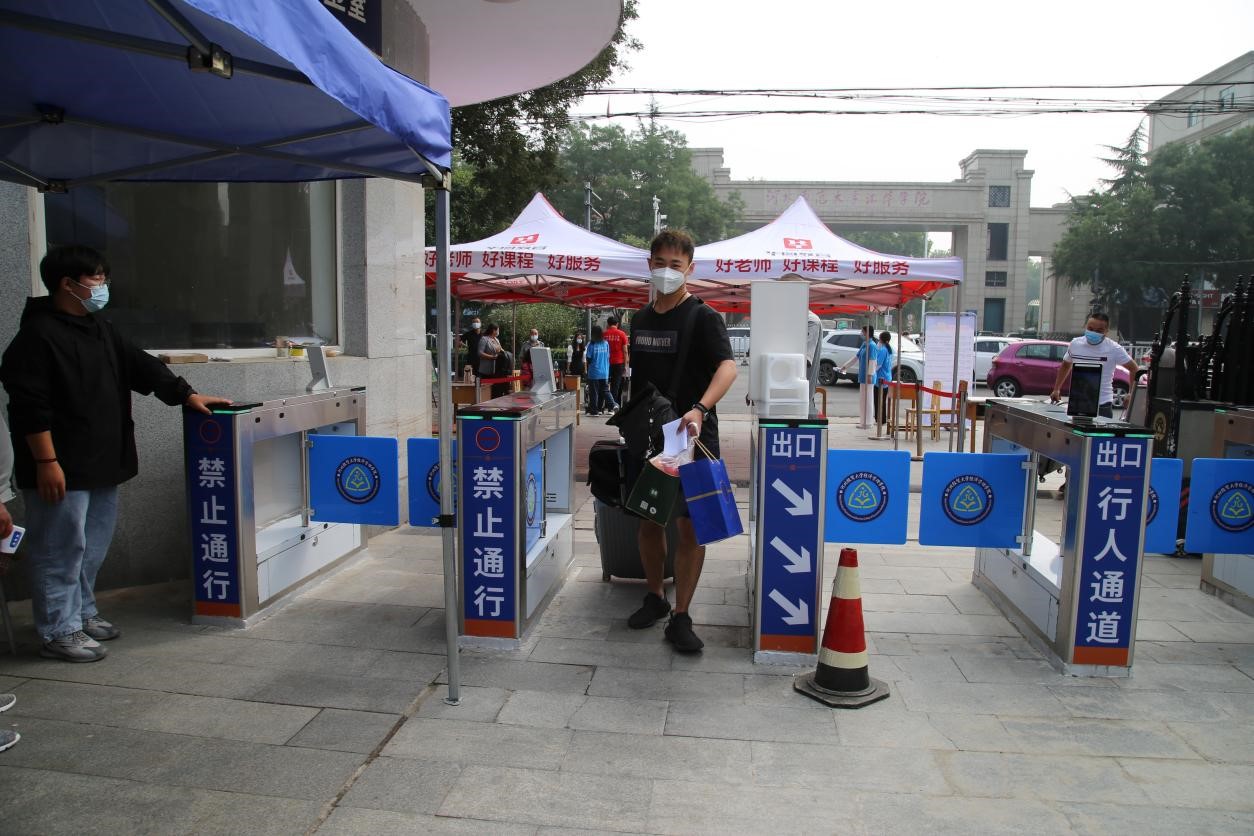 为了更好地做好疫情防控,控制外来风险,今年学院在南、西校区投资安装了12套人像识别系统,根据已经录入的师生信息,只要站在“刷脸机”前,对准镜头后便可以清晰地在屏幕上看到人的脸部,通过识别,“刷脸机”会发出一声“欢迎光临”,闸机应声而开;出门时,师生同样需在内侧的刷脸机进行相同操作才能走出校门。为了防止人脸识别不够准确,学生还可持身份证验证通过。