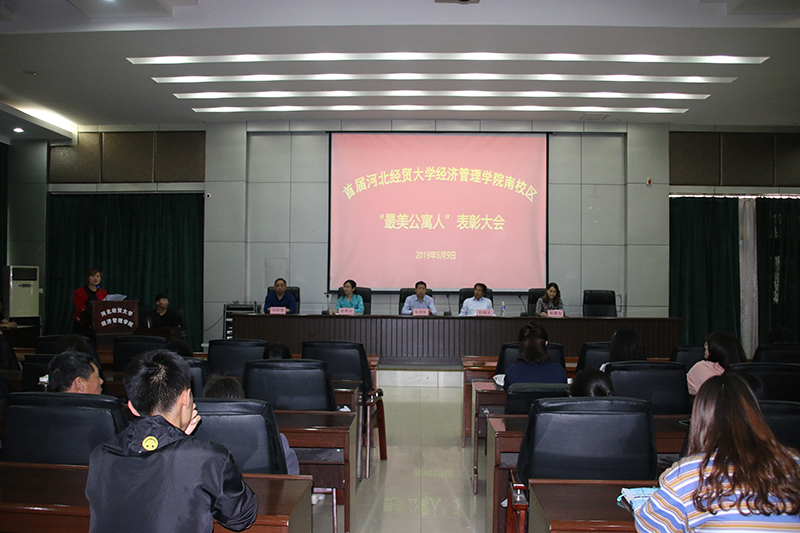 首届南校区“最美公寓人”评选表彰大会在学院图书馆报告厅举行。学院党委书记张进良出席大会并讲话。南校区后勤保障部部长张翠京、副部长杜晓东、公寓教室服务中心主任田恒通、和田物业负责人张慧允,以及宿管会成员、各系学生代表、和田物业全体员工参加活动。大会由公寓教室服务中心宿管老师王源主持。
