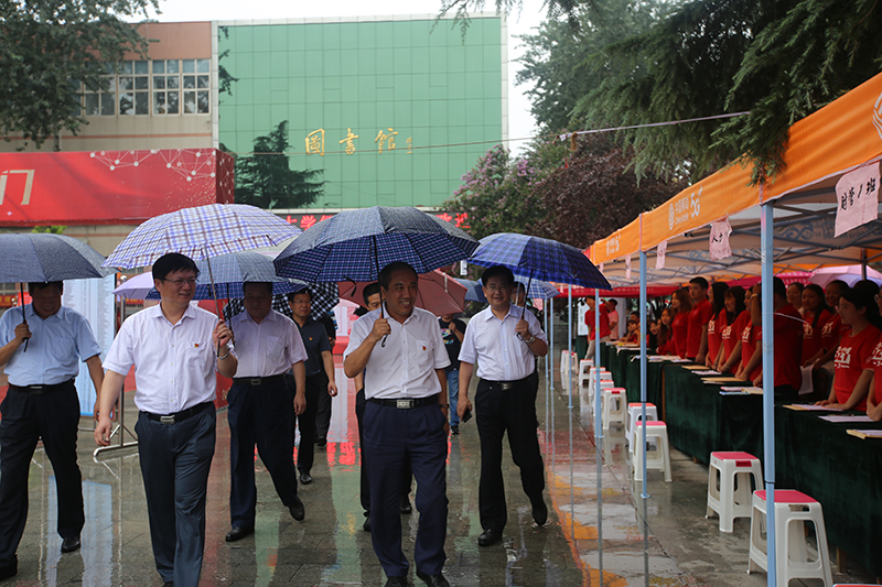 8月24日下午,新生报到期间,校党委书记董兆伟,校党委副书记、校长刘兵,校党委副书记陈亮冒雨到美高梅网上赌博(中国)唯一官方网站