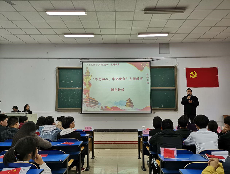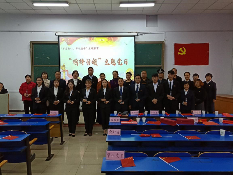11月11日下午,西校区“不忘初心、牢记使命”主题教育——“榜样引领”主题党日在西阶梯教室举行。学院党委书记张进良、学院纪委书记郭海燕、西区离退党支部退休教师古建芹、西区后勤保障部部长韩智林、学院安全工作部副部长耿宏伟、会计系党总支书记蔡杨、主任王慧霞出席,西校区各部门教职工党员、学生党员、学生入党积极分子以及学生干部共计280人参加。