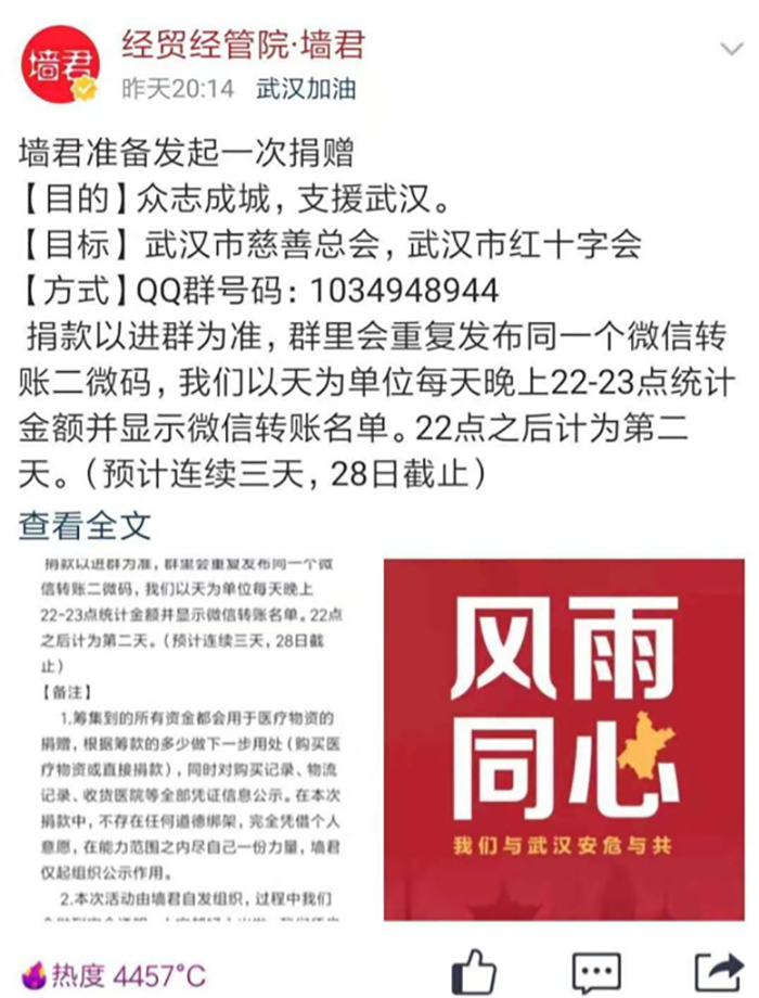 墙君发起捐款倡议