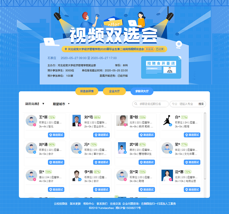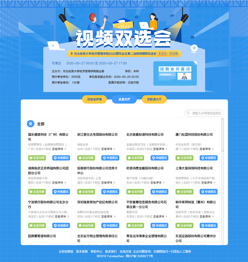 于5月27日在成功举办了2020届毕业生第二场网络视频双选会。