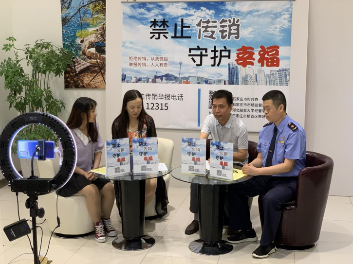 联合石家庄市打传办、石家庄市市场监督管理局、石家庄市桥西区打传办、石家庄市桥西区市场监督管理局等单位开展了以“禁止传销 守护幸福”为主题的云端直播进校园宣传活动,省内10所高校近3万余名学子线上聆听了讲座。