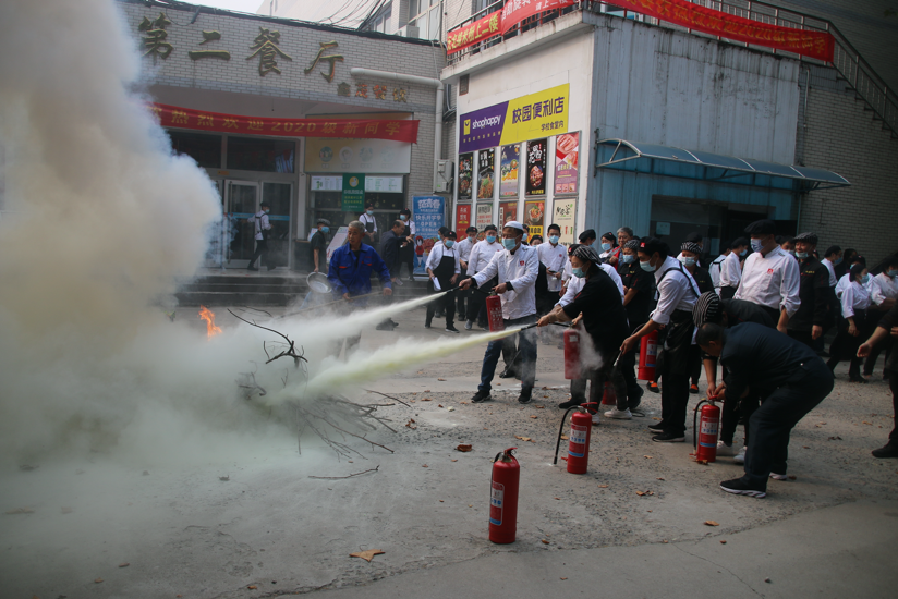 通过培训和演练,提高了食堂、楼管、物业等一线员工的消防安全意识,掌握了必要的消防安全技能,提高了火灾应急处置的能力和实战技能,为创建“平安和谐校园”打下坚实基础。
