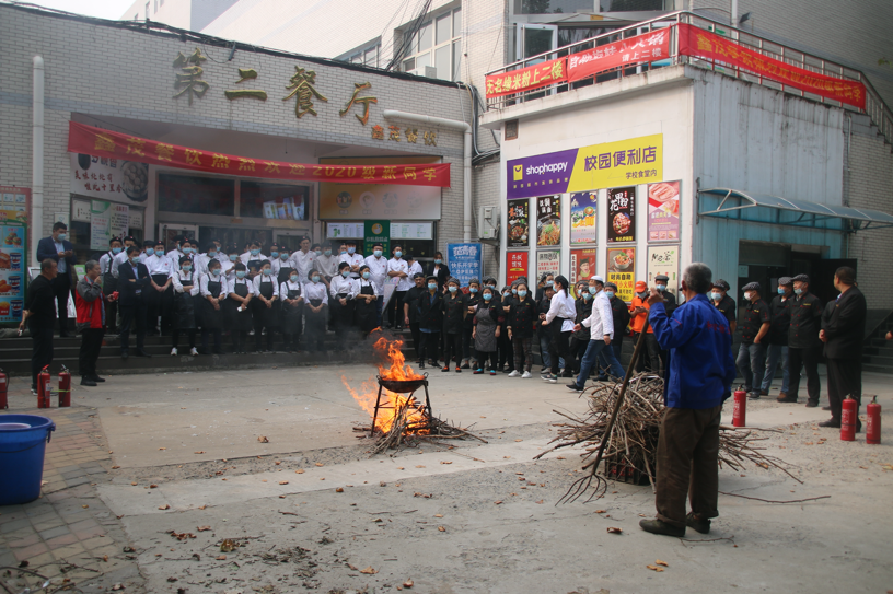 演练开始前,安全工作部相关负责人围绕检查消除火灾隐患的能力、扑救初级火灾的能力、组织疏散逃生能力、消防宣传教育能力等消防安全管理“四个能力”向参训人员进行现场培训,针对食堂火源种类、灭火方式选择等进行了重点讲解,并演示了灭火器等消防器材的使用方法和操作要领。