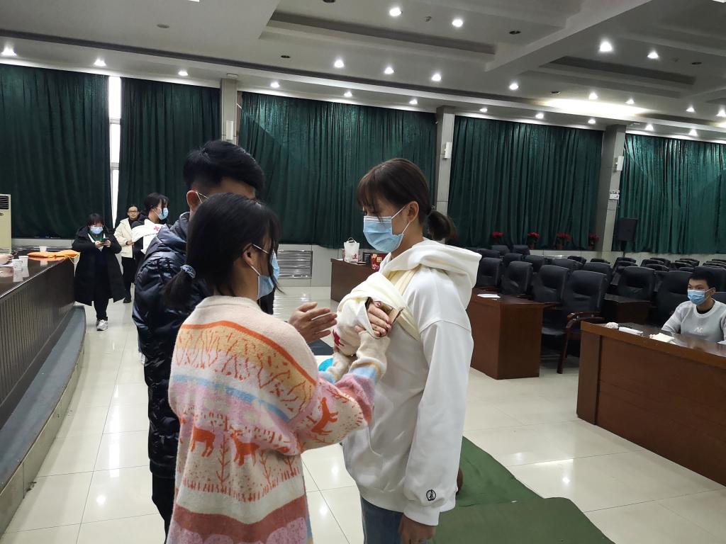 的2020年度省属高校大学生应急救护培训联合评估在学术报告厅举行。省红十字会业务部副部长马凤岗、省文明办志愿服务处副处长吴志勇、省财政厅社保处刘春光一行 7人对学院大学生应急救护培训工作开展情况进行综合考评,学院党委副书记张丽英出席,学工作副部长王敏、带队老师秦志华及学生参加考核。