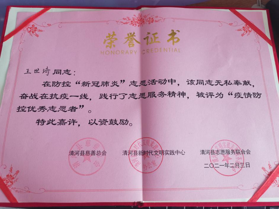 积极分子王世琦获得当地的肯定