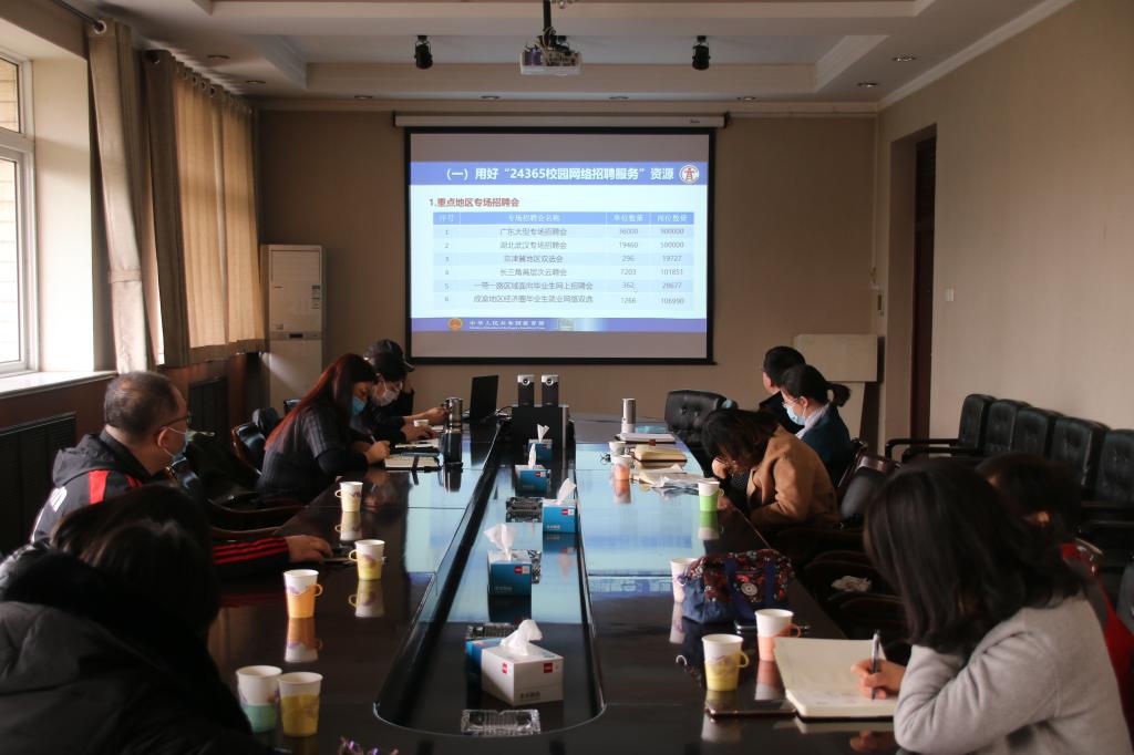 全体毕业班辅导员、各系就业工作负责人在学院五楼会议室收看了教育部2021届普通高校毕业生就业工作第二次调度网络视频会议直播。学院党委副书记张丽英、各系党总支书记,就业工作部全体工作人员一同观看。