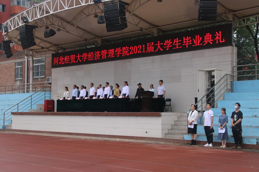 2021届大学生毕业典礼在学院操场隆重举行,欢送1727名毕业生。校党委常委、副校长张秀山出席典礼。学院领导马斌、刘风长、张进良、江秀军、张金桐、郭海燕、张丽英,各系部负责人及毕业班辅导员、毕业生代表六百余人参加。典礼由张金桐主持。
