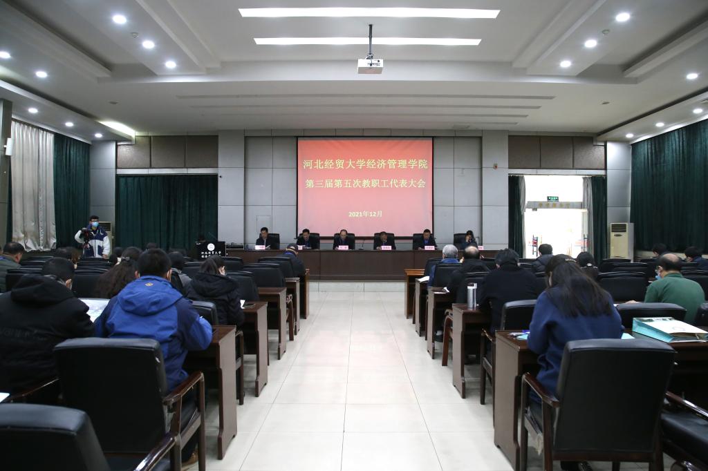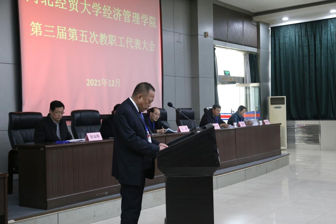 第三届第五次教职工代表大会在图书馆报告厅召开。学院领导马斌、刘风长、张进良、江秀军、张金桐、郭海燕出席,来自五个代表团的35名代表参加。大会由张进良主持。
