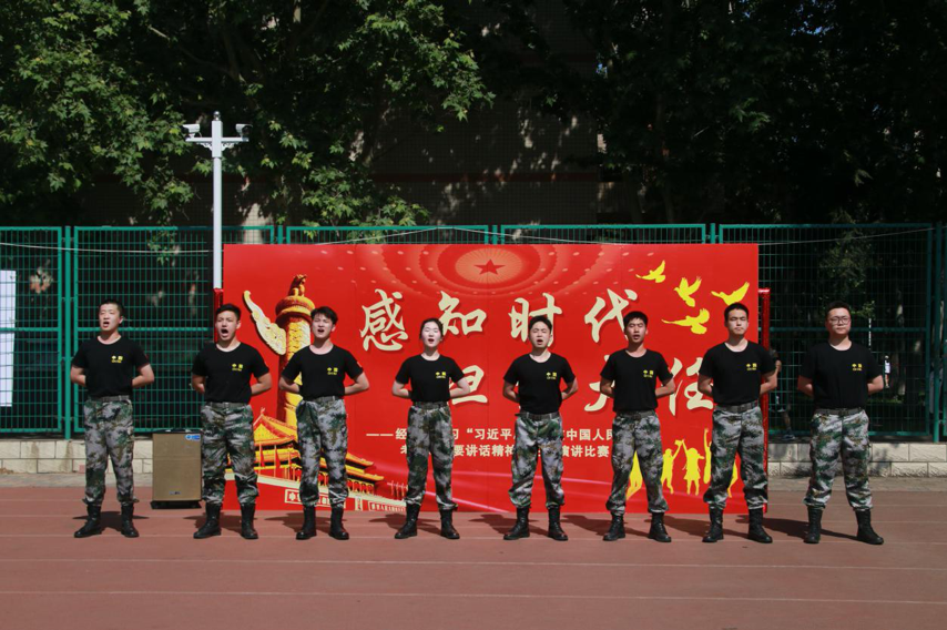 活动采取比赛和快闪相结合的方式。首先上场的是退伍复学大学生带来的一首铿锵有力的《强军战歌》。接着9位选手紧扣习近平总书记在中国人民大学考察时提出的寄语,“牢记党的教诲,立志民族复兴,不负韶华,不负时代,不负人民,在青春的赛道上奋力奔跑,争取跑出当代青年的最好成绩!”倾情讲述一个个真实动人的案例,用真实典型、鲜活生动的事例充分表达出“请党放心,强国有我”的坚定决心。
