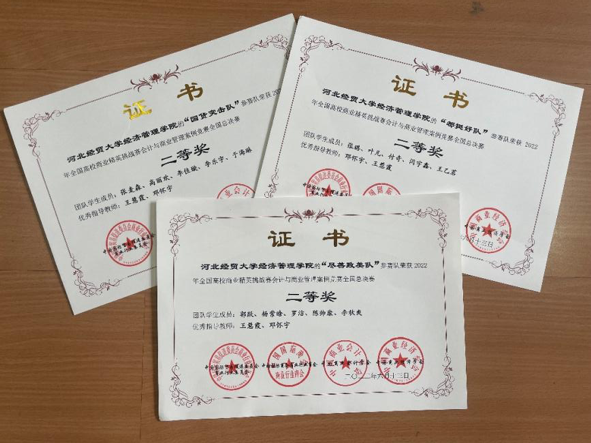 会计系学生张璐、叶凡、付奇、闫宇鑫、王乙茗组成的“都挺好队”、由郭跃、杨紫晗、罗洁、陈帅康、李秋爽组成的“尽善尽美队”、由张麦森、高丽欢、李佳璇、李乐宇、于海琳组成的“国货突击队”,历时七个月,通过撰写商业计划书、录制及制作参赛视频进入总决赛。最终,凭借严谨细致的思维和沉着冷静的发挥应对比赛答辩环节,三支队伍均获得“二等奖”,王慧霞、邓怀宇荣获优秀指导教师称号。