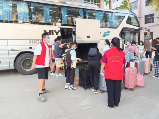 今年秋季迎新工作的起点不在校门口,是在火车站。9月17日早上6点半,披着晨霞,青协负责人吕亚辉就带领十多位志愿者,身着防护服来到火车站“摆摊”设点,为前来报到的经管新生提供引导。刚刚安置好接站点,就迎来了第一位新生,志愿者们向他热情地介绍了学校学习和生活情况,等到第一批20多位学生到齐,志愿者们帮助大家有序安排行李上车,大巴直奔西南校区。为了节约学生进校时间,吕亚辉在车上完成了学生信息登记、抗原检测等项目,到达校区后,又安排运送行李。就这样一趟一趟,从早上7点到晚上8点,接驳车的志愿者同学们一刻也没有停歇,吕亚辉的早饭直到下午三点才吃上。接站的志愿者们碌着忘记吃饭,但没忘记留给新生一句温暖的问候,他们是最美的“大白”。