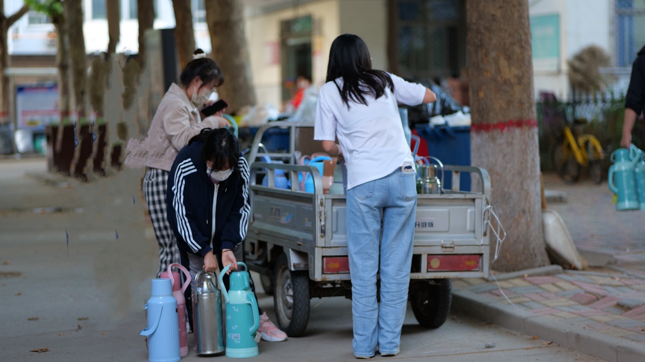 会计系将系81名学生党员,分成9个志愿服务小组,对接78间宿舍508名新生,对接从早上7点到下午6点,为新生打水,配送荤素搭配、营养全面的盒饭。工作过程中,每一位志愿者都活力满满,不叫苦不喊累,一日三餐、滚烫的热水按时送到,尽力满足新生们个性需求。党员志愿者们牺牲自己的学习、休息时间,甚至有身体不舒服或因往返于食堂、宿舍、水房之间脚上磨泡的,仍然坚守在自己的岗位。