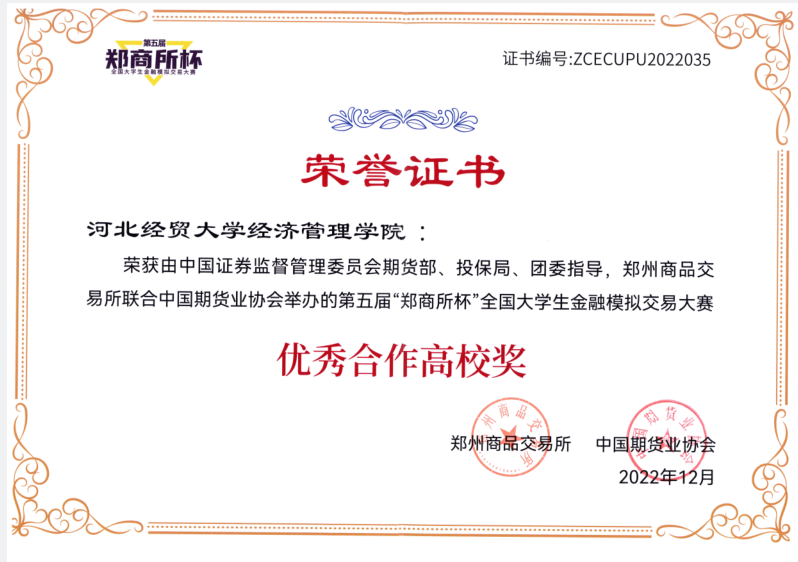 经济系联合河北恒银期货有限公司共同组织,得到了会计系、商务系、信息系、管理系等系部的大力支持,18个专业近600名学生踊跃参加比赛。自2022年9月份伊始,以2022年期货模拟交易实训项目为依托,以开展多期线上培训和线上实时答疑的方式讲授专业知识和赛事流程。历时4个多月的时间,参赛学生边学习,边比赛,边实际操作,真正将理论和实际运用相结合,实现了以赛促学和将学生转化成具有战略眼光的专业人才的双重目标,是推进学院应用型人才培养的又一次重要探索。