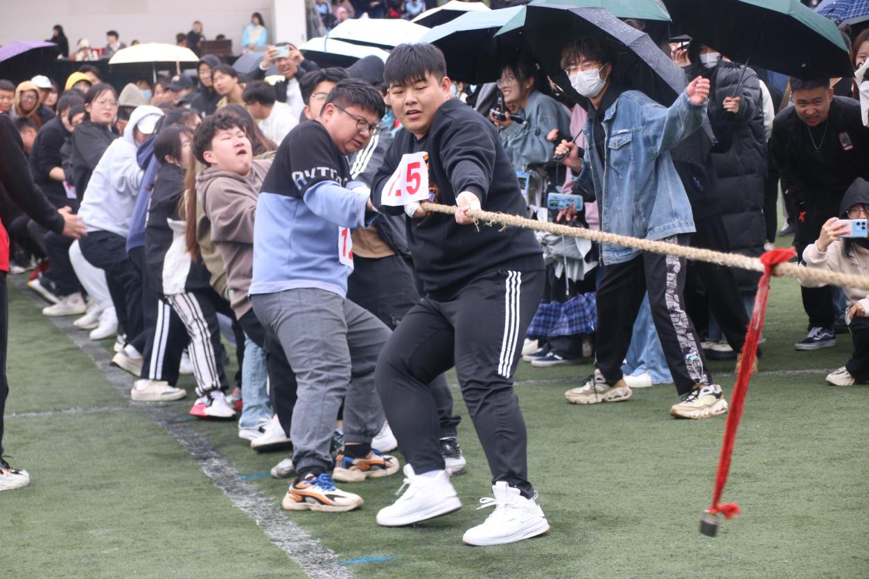运动会期间气温骤降,细雨蒙蒙,运动员们的热情丝毫不减。径赛各队选手犹如离弦之箭冲出起跑线;田赛场上,跳远组、跳高组、铅球组的运动员们个个精神抖擞;趣味比赛轻松愉快,现场氛围紧张活跃,呼声高涨;裁判和青年志愿者们一丝不苟,用心地做好运动会的各项服务工作。