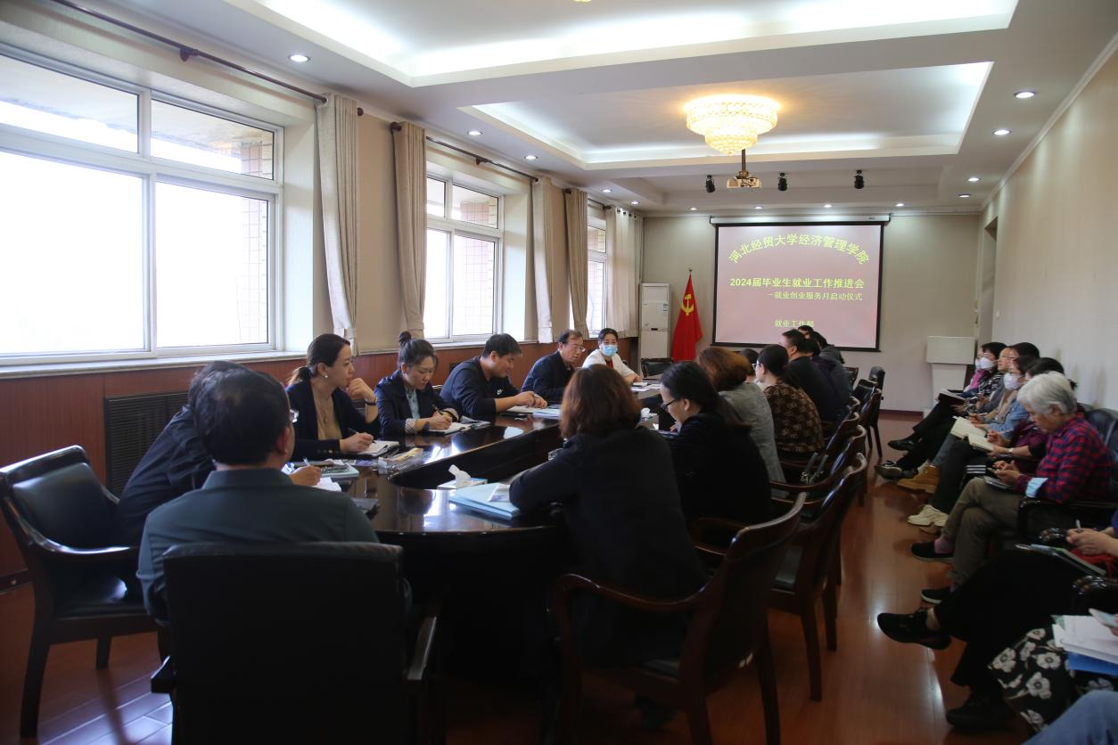 2024届毕业生就业工作推进会暨“就业创业服务月”启动仪式在五楼会议室举行。副院长王鸿喜出席,全体专兼职辅导员参加。会议由就业工作部部长秦晓燕主持。