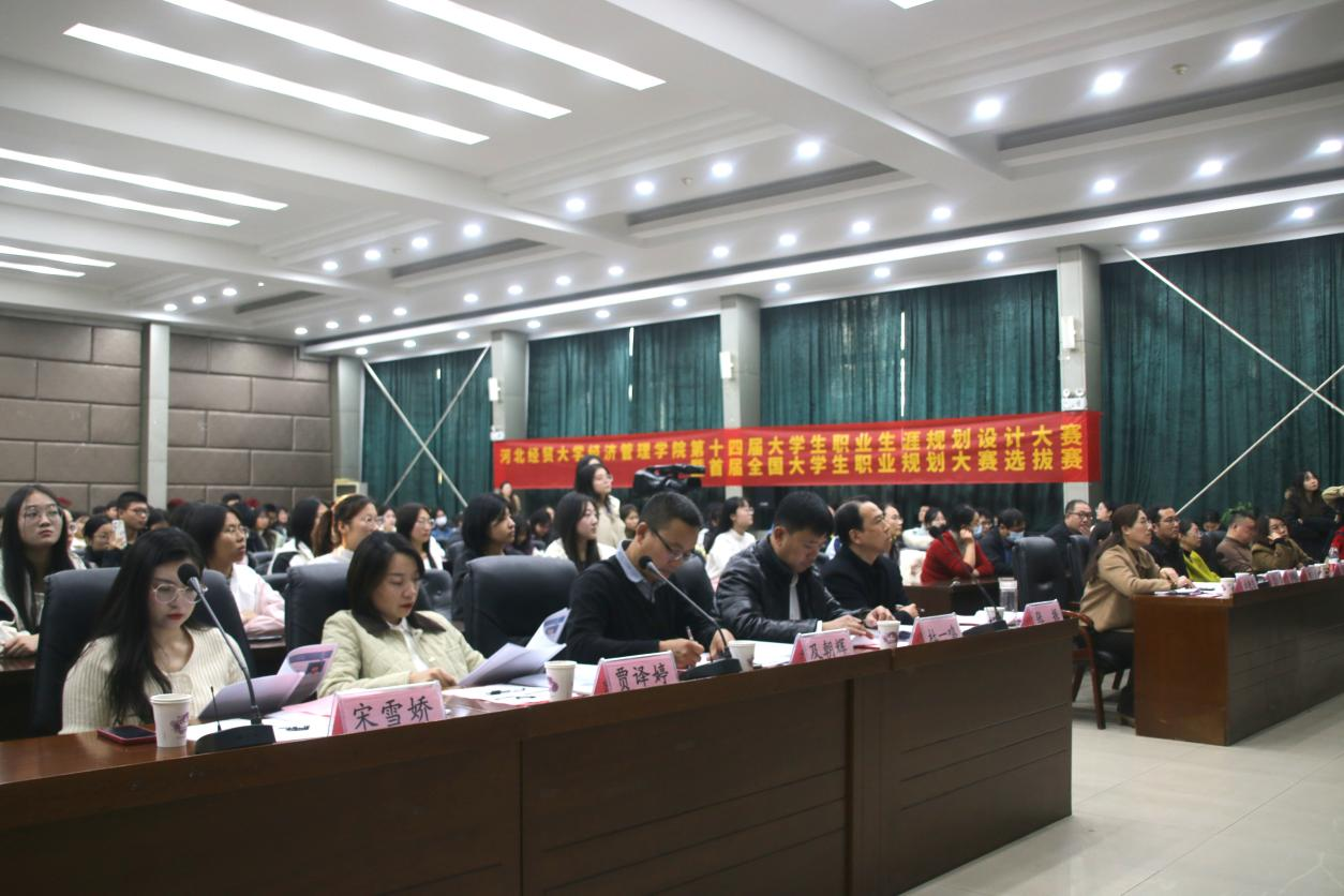 于图书馆报告厅举办第十四届大学生职业生涯规划大赛。本次大赛特邀河北青年管理干部学院学生处处长、教授杜一鸣,河北经贸大学信息技术学院党委书记张振,北京学知林文化发展中心总经理及朝辉,河北丰盾供应链管理有限公司总经理贾译婷,东软教育科技集团院校经理宋雪娇担任评委嘉宾。学院就业工作部部长秦晓燕及各系相关负责人出席,百余名学生到场观摩。