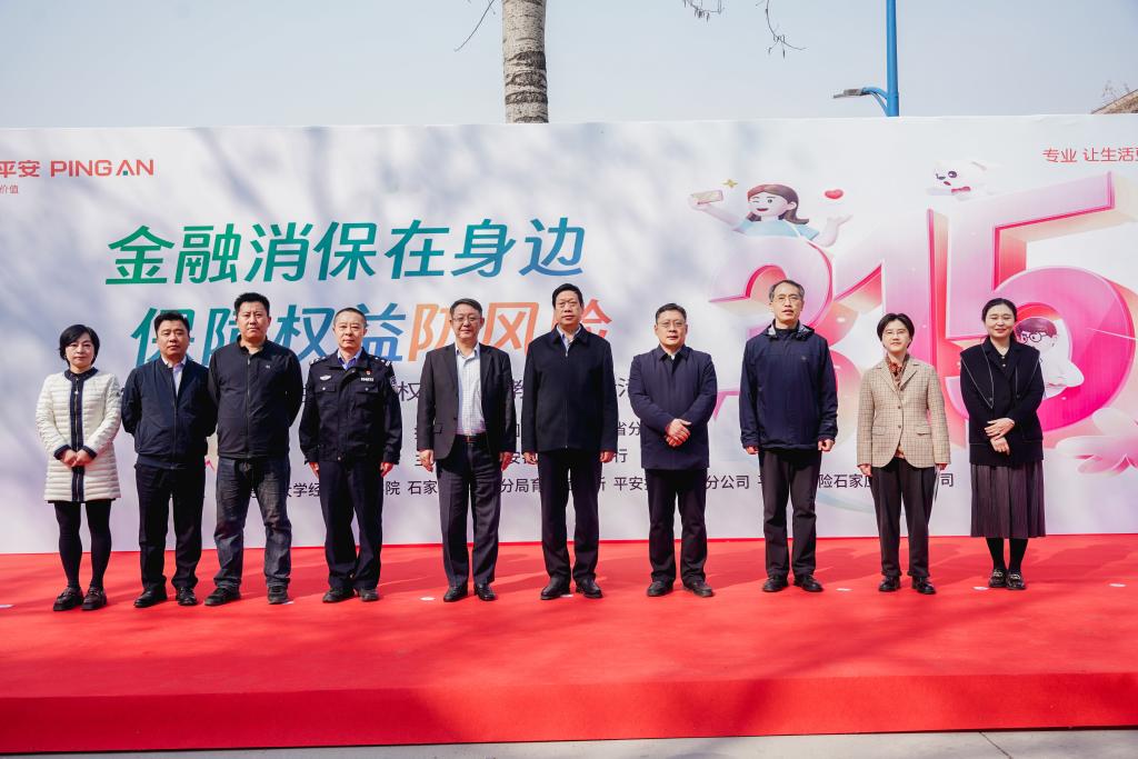活动邀请中国人民银行河北省分行金融消费者权益保护处副处长胡利峰、中国人民银行河北省分行反洗钱处副处长石月龙、平安银行石家庄分行副行长周焕、平安银行石家庄分行行长助理沈安娜、石家庄市桥西分局育文派出所武亚涛出席,副院长张进良一同参加了开幕仪式。