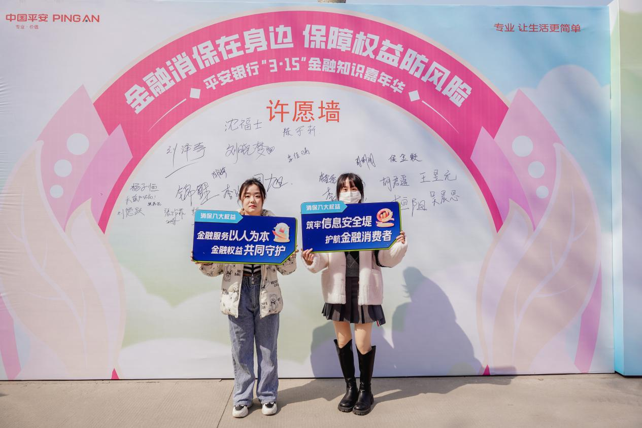 活动现场,通过发放宣传折页、案例讲解、现场咨询等方式,面向在校生消费者普及金融消费者的八大权益,讲解金融保险诈骗的主要手段,提醒同学们远离不良校园贷,理性消费,加强个人信息保护,提升防非反诈意识,守护好自己的钱袋子。活动现场气氛热烈,同学们踊跃参与理性维权“套圈圈”、组队游戏“谁是卧底”、签名留念“许愿墙”等活动,在趣味游戏中加深对金融消保知识的了解。