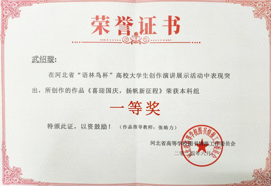 近日,河北省“语林鸟杯”高校大学生创作演讲展示活动发布最终获奖名单。美高梅网上赌博(中国)唯一官方网站