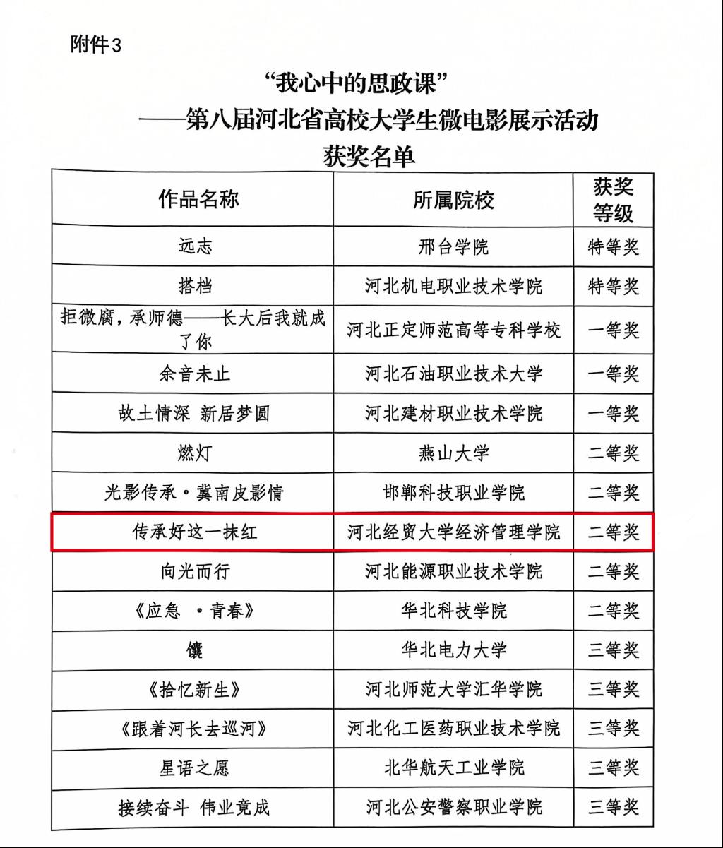 作品《传承好这一抹红》荣获“我心中的思政课”大学生微电影展示活动二等奖。