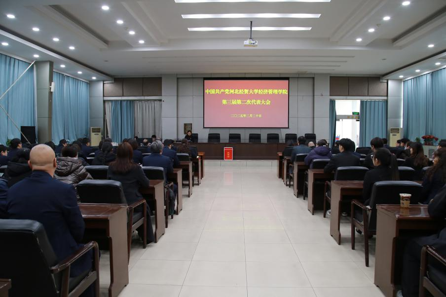 召开第三届第二次党员代表大会,选举产生出席中共河北经贸大学第四次代表大会代表。会议由院党委副书记张丽英主持,学院党员代表98人参加了会议。