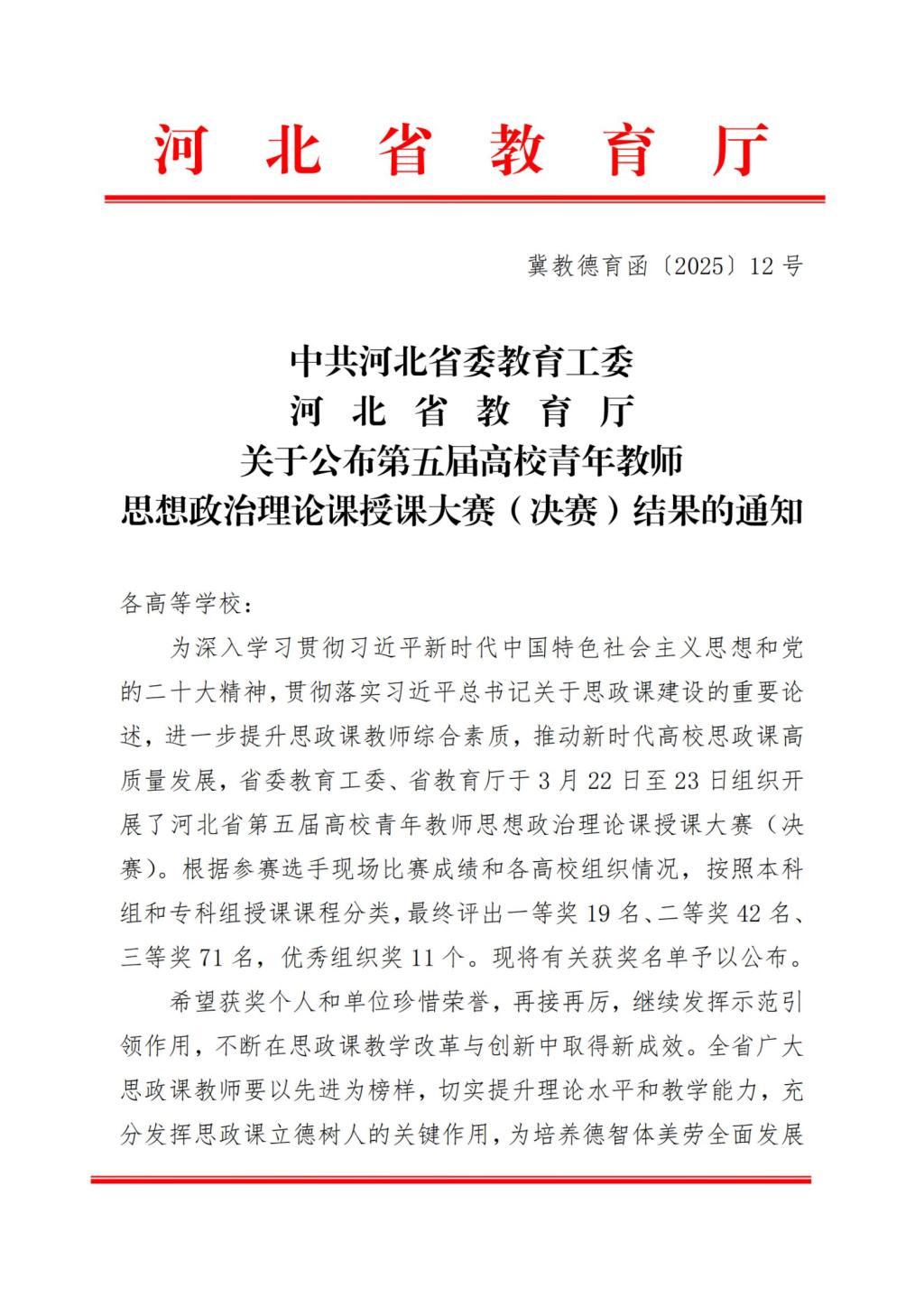 始终高度重视思政课程建设,通过开展教学研讨、培训交流等活动,不断提升教师的教学水平。此次成绩的取得,将激励更多思政课教师夯实教学基本功,投身于思政教学改革与创新,为今后的教育教学工作积累宝贵的经验。