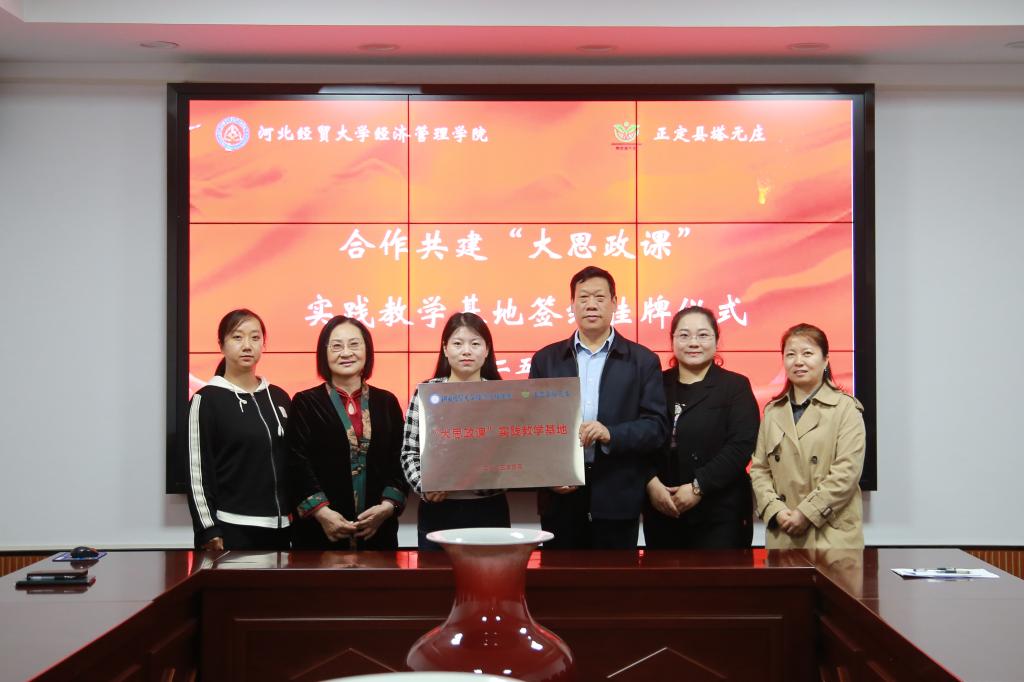 与石家庄市正定县塔元庄村携手共建的“大思政课”实践教学基地正式揭牌成立。学院副院长张进良、正定塔元庄村相关负责人出席揭牌仪式,马克思主义教研室教师代表共同见证了这一重要时刻。