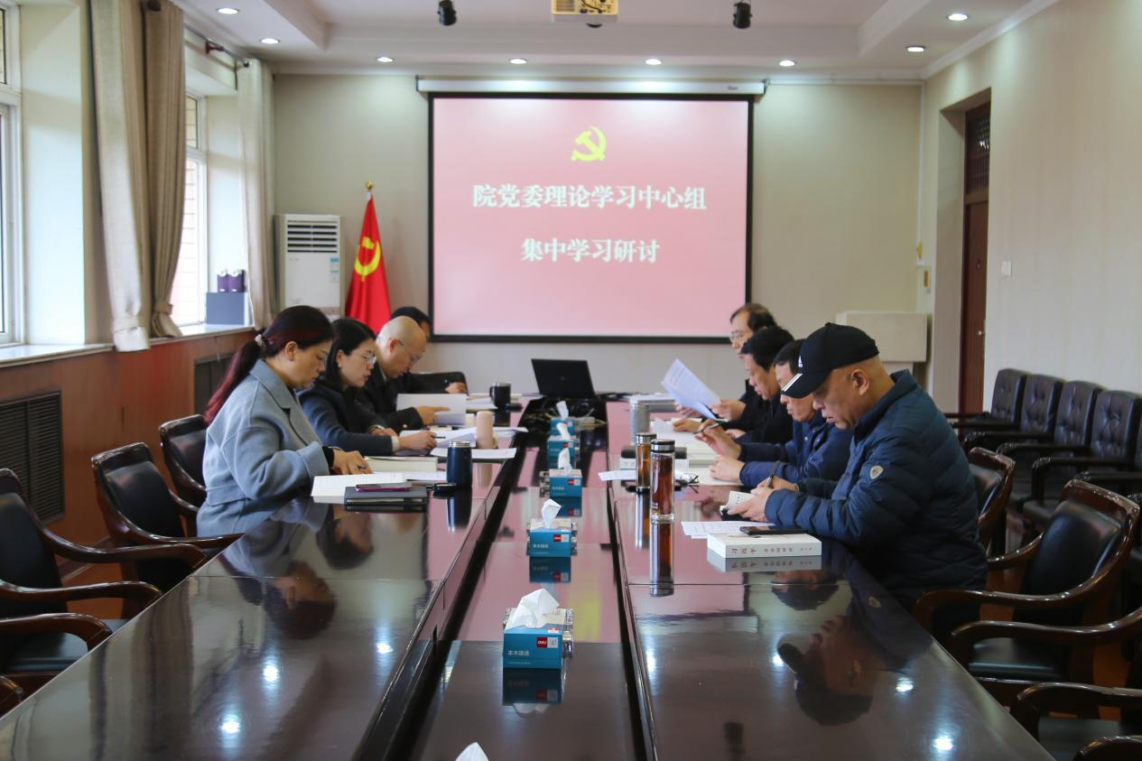 10月31日,院党委理论学习中心组在五楼会议室开展集中学习研讨,认真学习党的二十届四中全会公报、《习近平谈治国理政》第五卷和《中国共产党思想政治工作条例》。院党委书记蔡杨主持学习,院长李大庆、副院长张进良作重点发言,理论学习中心组成员参加学习。