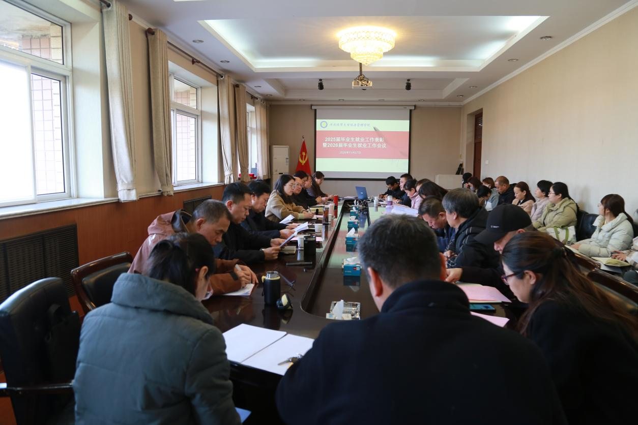 2025届毕业生就业工作表彰暨2026届毕业生就业工作部署会议在学院五楼会议室顺利召开。学院领导班子成员出席会议,全体中层管理干部、各系就业工作负责人以及2025届、2026届专兼职辅导员参加会议。会议由副院长王鸿喜主持。