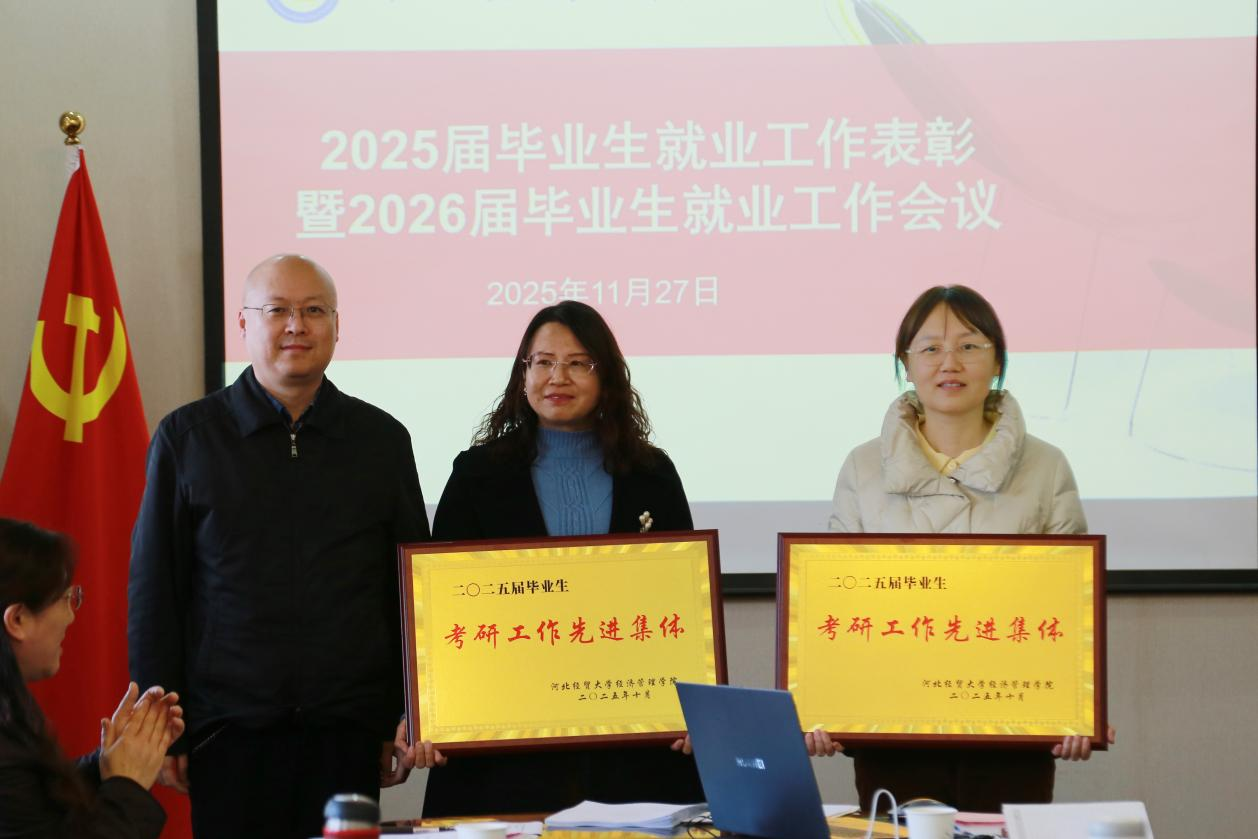 副院长王鸿喜宣读了《关于表彰2025届毕业生就业创业工作先进集体和先进个人的决定》。乔蕾、李欣、崔龙等7人荣获“就业先进个人”称号,王琪、李珊、樊璠荣获“考研先进个人”称号,信息系荣获“2025年就业日常优秀集体”,商务系、会计系获得“2025届毕业生考研先进集体”称号,信息系、商务系获得“2025届毕业生就业先进集体”称号。学院领导为获奖集体和个人代表颁发了荣誉证书。就业先进集体代表信息系和就业先进个人代表徐凯旋分别发言,分享了他们在拓展就业渠道、实施全过程就业指导、开展精准帮扶等方面的有效做法和宝贵经验。