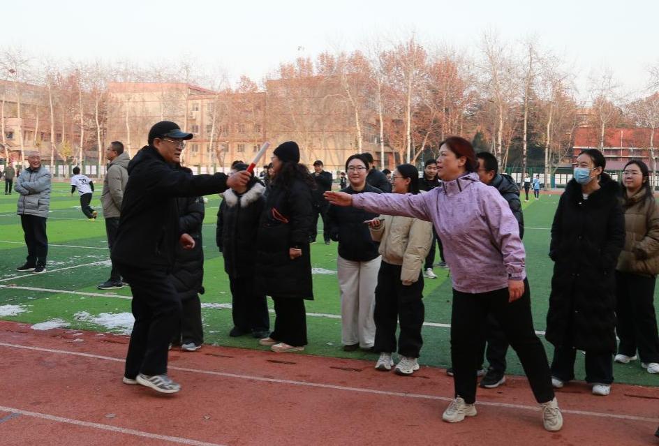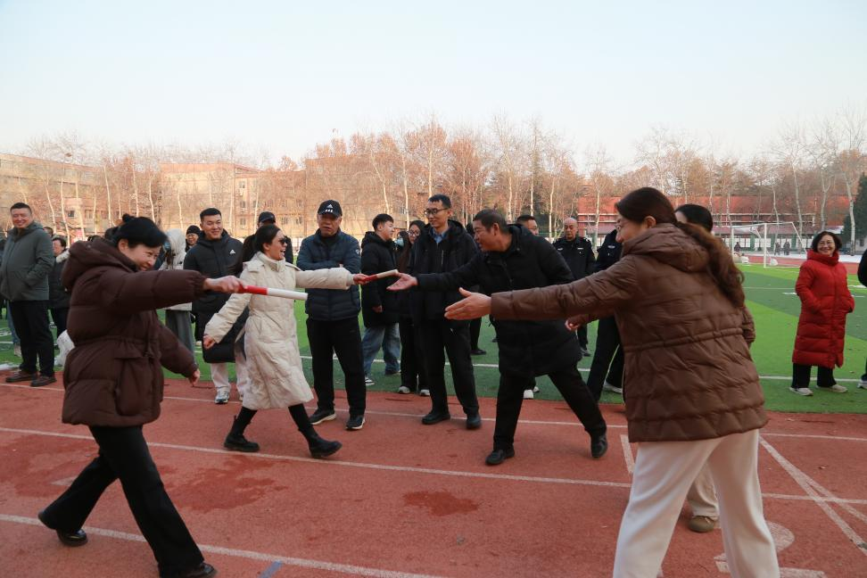 为丰富教职工体育文化生活,提升身体素质,营造积极健康的校园氛围,12月15日下午,院工会在南校区操场组织开展了2025年教职工冬季趣味接力赛活动。学院领导及各系、各部门教职工共同参与。