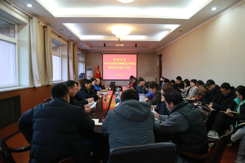 在五楼会议室召开不当牟利突出问题整治工作推进会暨安全稳定工作会,深入贯彻落实上级相关会议精神,全面部署学院近期工作与安全稳定任务。学院领导出席会议并讲话,全体中层管理人员参加会议。会议由学院党委书记蔡杨主持。