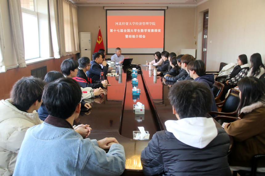 在行政楼五楼会议室为第十七届全国大学生数学竞赛获奖学生举办颁奖仪式暨经验分享会。副院长张进良出席,优秀指导教师及学生代表参加,基础教学部主任王志军主持会议。