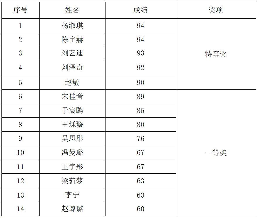 大赛历时两月有余,文法系准备了10辑共计1000个最新英语思政术语,暑假期间每周在文法系融媒公众号“文法视界”推出一辑供选手及时整理、学习掌握。并于9月1日组织了思政英语词汇大赛线下考试。经认真评选,杨淑琪等5名同学获特等奖,宋佳音等9名同学获一等奖。