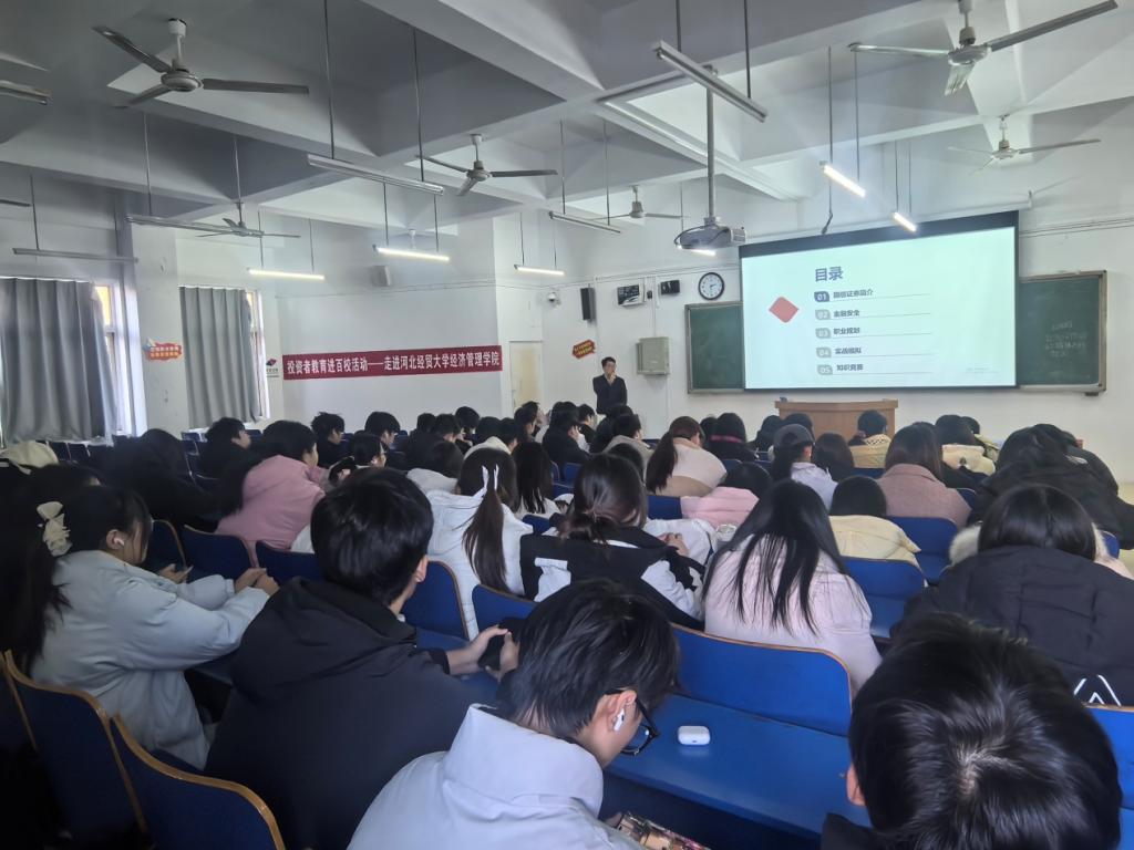 为深入贯彻国家将投资者教育纳入国民教育体系的部署要求,切实强化高校学生金融素养与风险防范能力,12月8日,经济系联合国信证券河北分公司成功举办“投资者教育进百校——走进美高梅网上赌博(中国)唯一官方网站