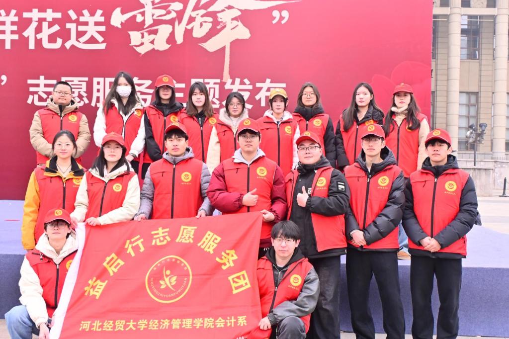 3月3日,为深入践行雷锋精神的时代内涵,在第63个“学雷锋纪念日”来临之际,会计系“益启行”志愿服务团参加了由中共石家庄市委社会工作部和石家庄市文明办共同主办的“鲜花送雷锋”志愿服务活动,以实际行动诠释新时代青年志愿者的政治本色。