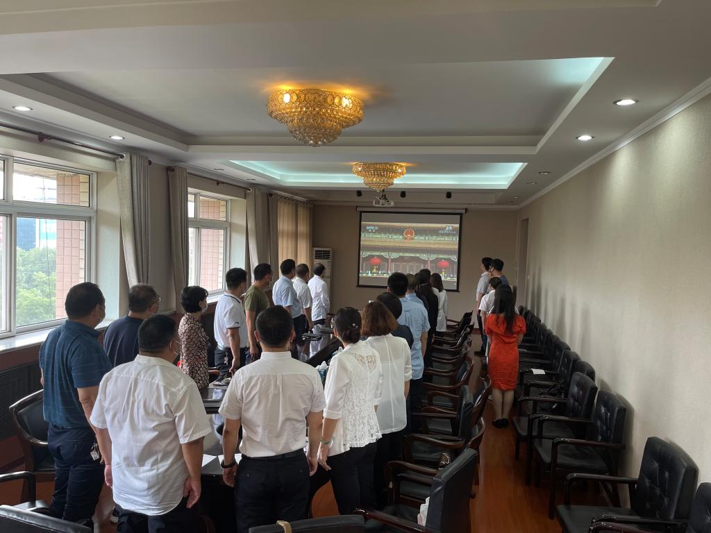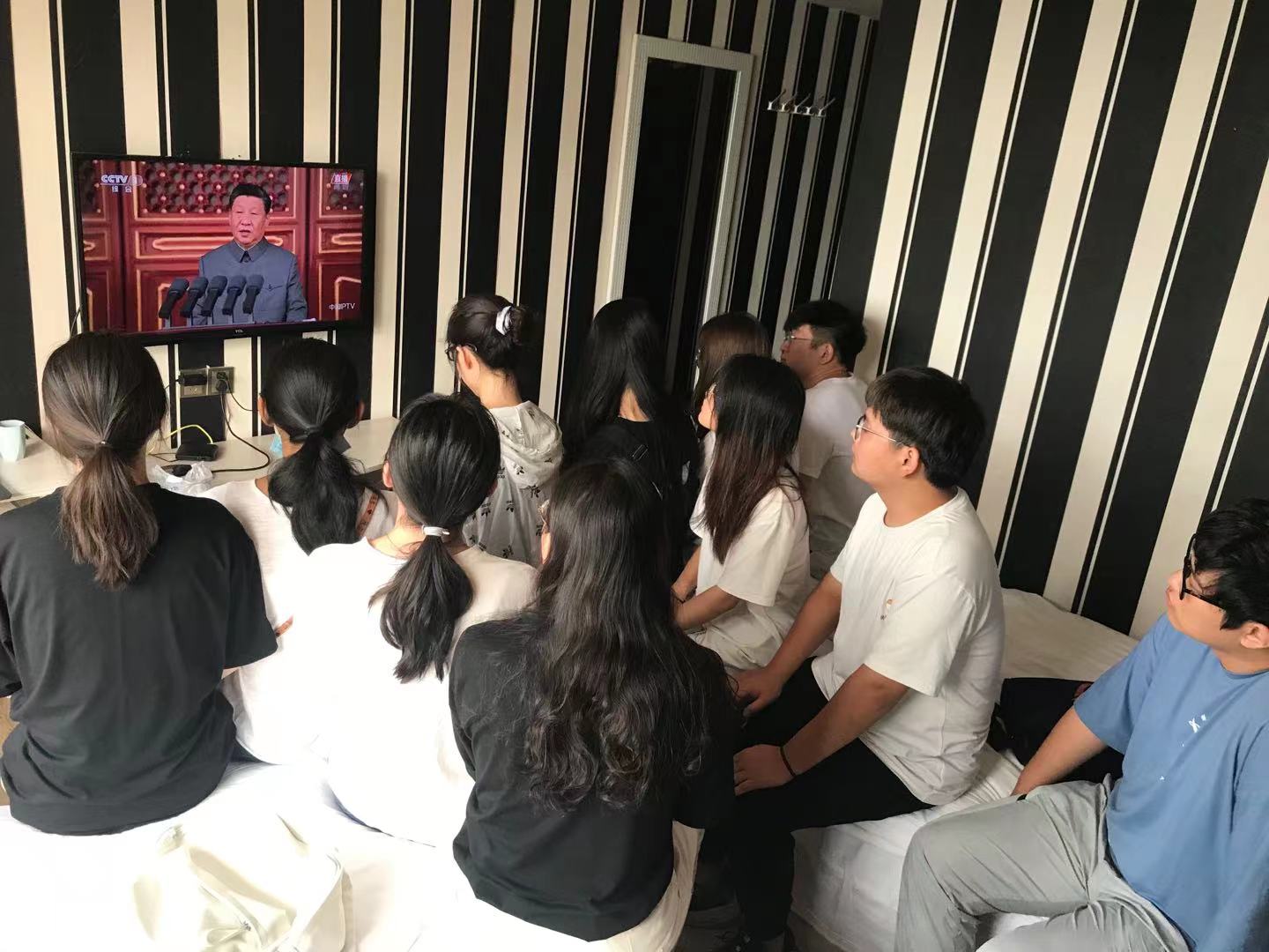 7月1日上午8时,庆祝中国共产党成立100周年大会在北京天安门广场隆重举行。中共中央总书记、国家主席、中央军委主席习近平出席大会并发表重要讲话。学院组织各系各部门负责人在五楼会议室集中收看,要求已经返家的学生在家收看。在外开展暑期社会实践、实习的各小分队也积极组织收看,做到学院师生收听收看全覆盖。