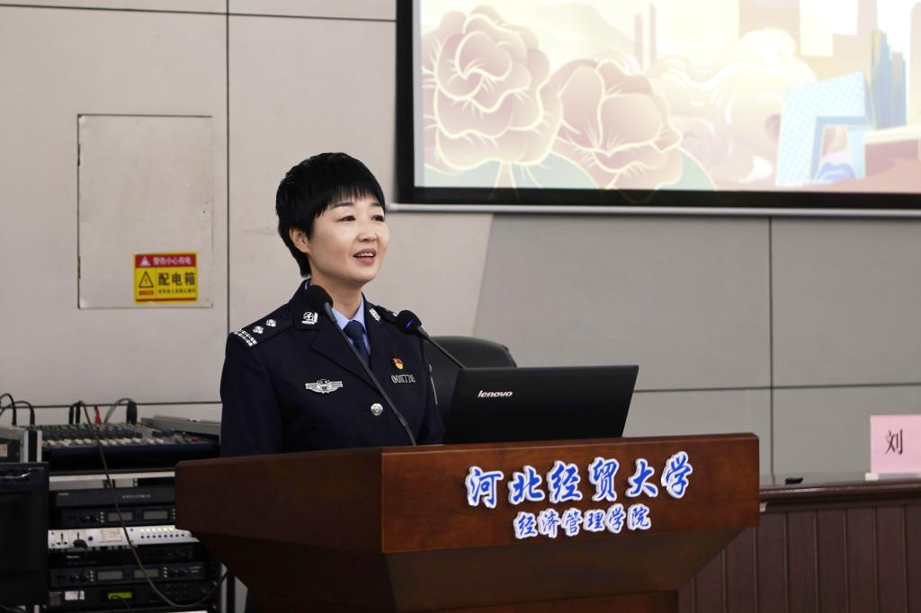 桥西分局育文派出所二级警长张宇,聚焦“法制宣传进校园之安全教育”展开阐述。他结合日常辖区高校安全管理经验,围绕学生矛盾纠纷调解、电信网络诈骗防范等辅导员高频接触的工作场景,并针对刷单返利、冒充师长等高发诈骗类型,拆解实务操作要点,分享了问题处理技巧。他还现场讲解了识别方法与警示话术,内容极具实操性。