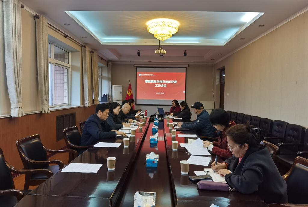 为深入贯彻落实立德树人根本任务,进一步提升思想政治理论课教学质量与实效性,推动思政课改革创新向纵深发展,马克思主义学院于11月7日在五楼会议室召开思想政治理论课听课指导组工作会议。学院党委书记蔡杨、院长李大庆等听课指导组全体成员齐聚一堂,共同谋划思政课听评课工作。